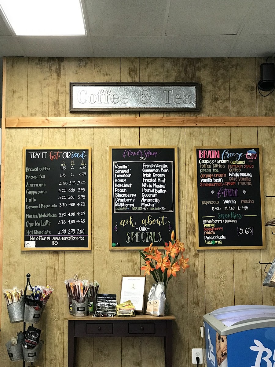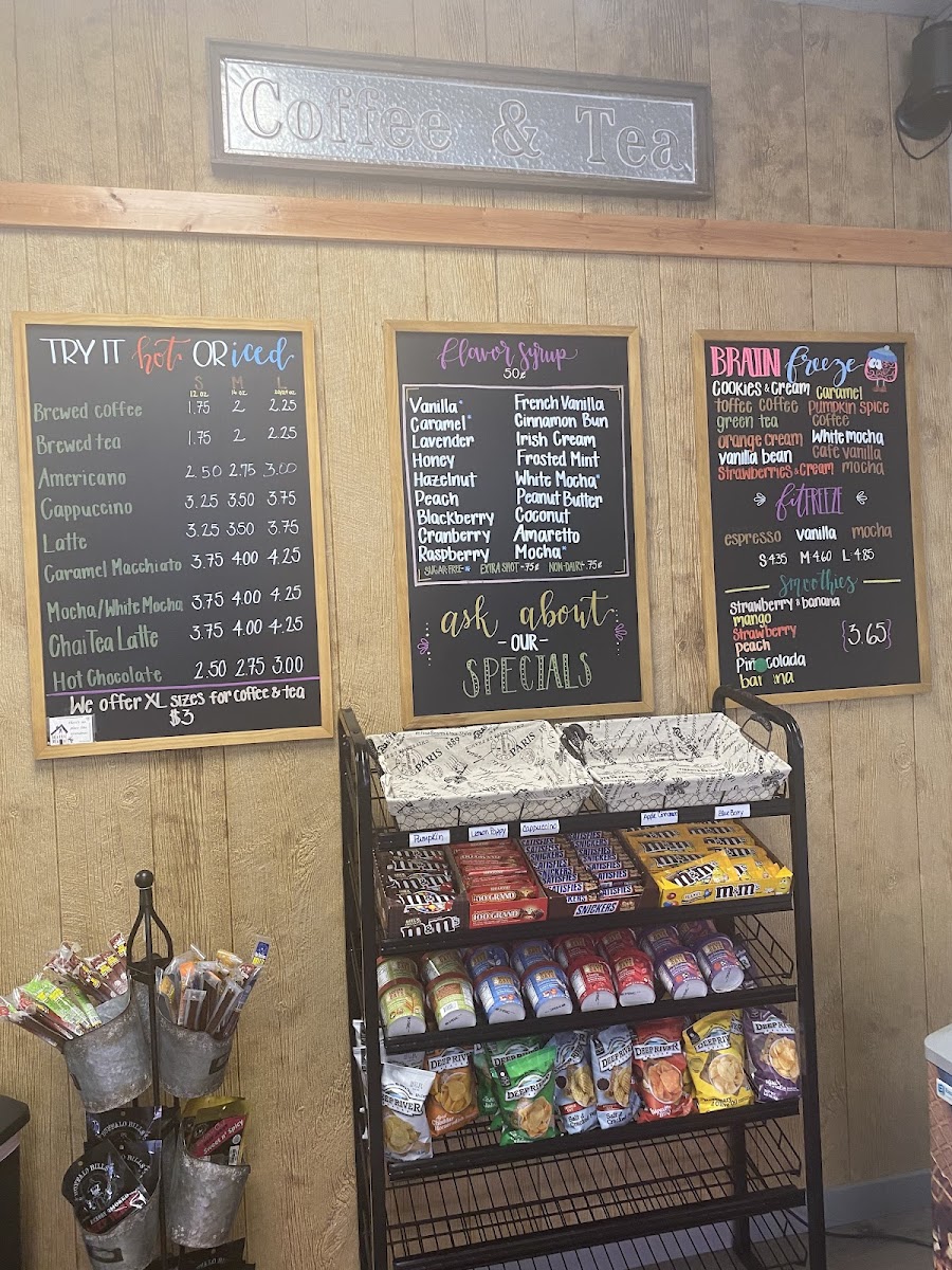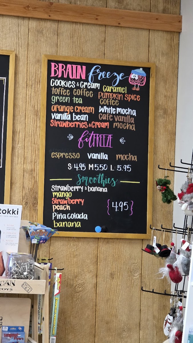 Overall, the menu at Southside Coffee And Gifts offers a cozy and seasonal selection that leans heavily into comforting flavors and creative beverages. The Fall Specials like Toasty Pumpkin Hot Chocolate, Turmeric Caramel Apple Chai, and Brown Butter Nut Latte Pumpkin Spice Caramel Apple highlight a warm, autumn-inspired theme, while the option to enjoy drinks “hot or iced” adds flexibility to classics such as Brewed Coffee, Brewed Tea, Americano, Cappuccino, and Latte. The Holiday Specials, including Pumpkin Pie Latte, Apple Cider, Peppermint Mocha, Eggnog Latte, and Snickerdoodle Latte, bring a festive touch that feels both nostalgic and indulgent. For something more playful, the Brain Freeze Flavors like Gotton Gandy, Green Tea, and Orange Cream provide a refreshing twist. Rounding out the menu are flavor add-ins such as Vanilla, Caramel, Lavender Honey, and Hazelnut, allowing for customization. While prices are not listed, the variety and seasonal creativity make the menu feel thoughtfully curated and appealing for both regular coffee drinkers and those looking for something a bit more unique.